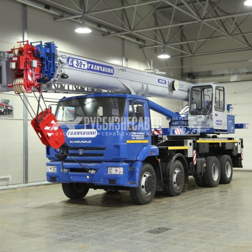 Грузоподъемность 32т, шасси КАМАЗ-6540, стрела 30,2 м., в базовой комплектации противовесы 2,4т. + 2,4 т. (перевозятся в составе крана), гарантия на кран 18 месяцев или 1000 м/ч