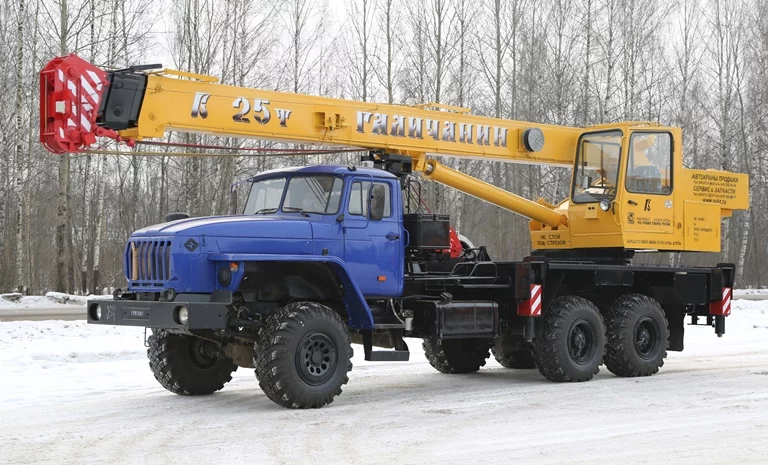 Груз-ть - 25 т; Модель шасси - УРАЛ-4320; Колес.фор. - 6Х6; Модель двиг. - ЯМЗ-53623; Длина стрелы - 21,7 м; Габ.разм., мм - 12000х2500х3600; М.снаряж - 22200; Опор.контур - 4200 х 5600; Кол.секций стрелы - 3; Срок гаран. - 18 месяцев или 1000 мото-часов;