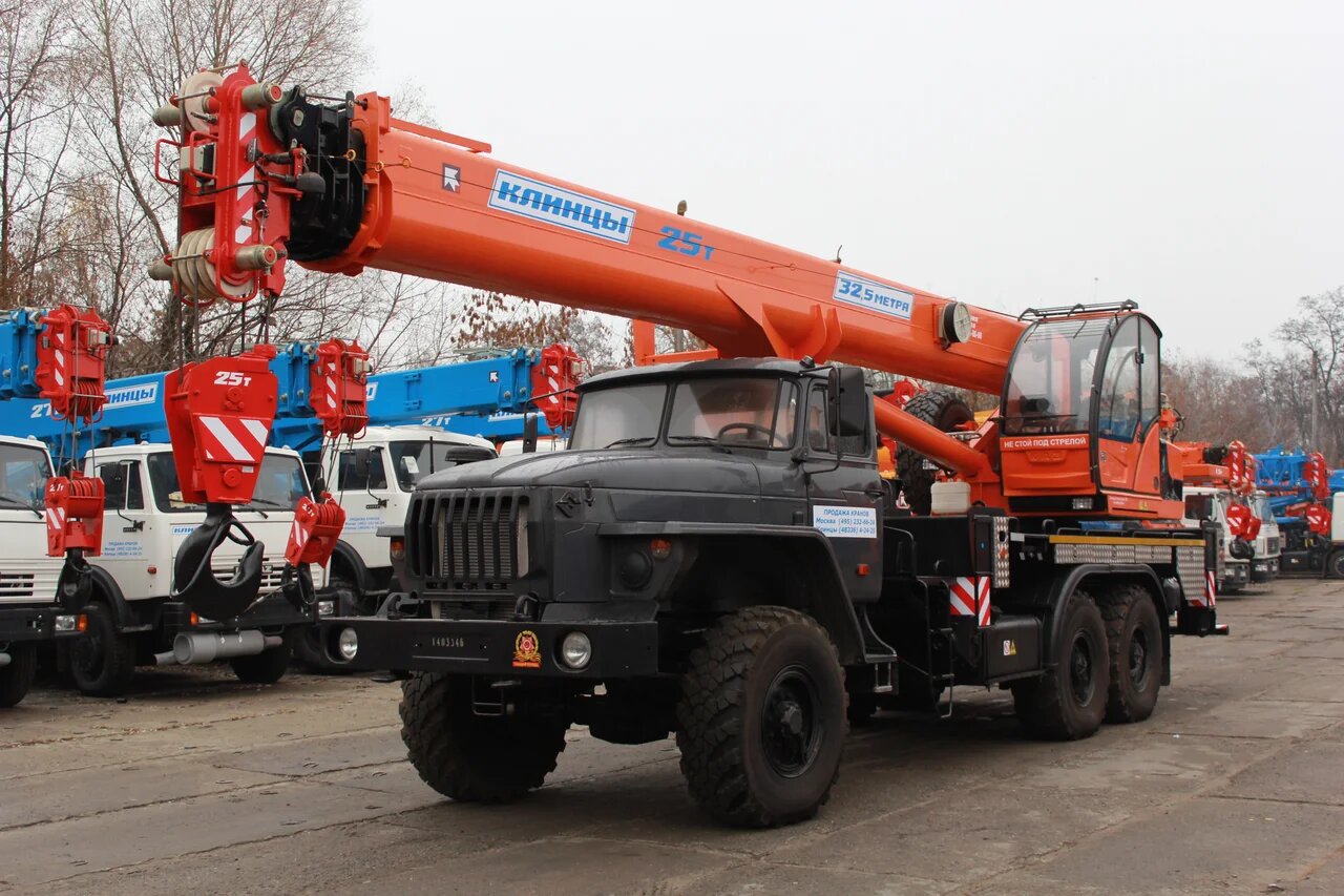Груз-ть - 25 т; Модель шасси - УРАЛ-4320; Колес.фор. - 6Х6; Длина стрелы - 33 м.; Раб.зона - 360; М. 1,5 т. доп. отдельно возимый; Кол.секций стрелы - 4; Срок гаран. - 18 месяцев или 1000 мото-часов;