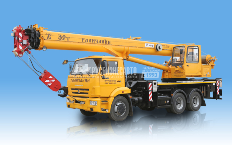 Груз-ть - 32 т; Модель шасси - КАМАЗ-65115; Колес.фор. - 6х4; Модель двиг. - КАМАЗ-740; Длина стрелы - 31 м; Раб.зона - 360 град.; М.противовеса - 1,0 т. + 1,5 т.; Сп.транс.противовеса - на кране; Габ.разм., мм - 12000 х 2500 х 3870; М.снаряж - 21600 кг.; Опор.контур - 5450 х 6100, Кол.секций стрелы - 4; Срок гаран. - 18 месяцев или 1000 мото-часов;