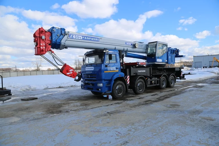 Грузоподъемность 50т, шасси КАМАЗ-65201, стрела 34,1 м., в базовой комплектации противовесы 2т. + 2 т. (перевозятся отдельно от крана), гарантия на кран 18 месяцев или 1000 м/ч