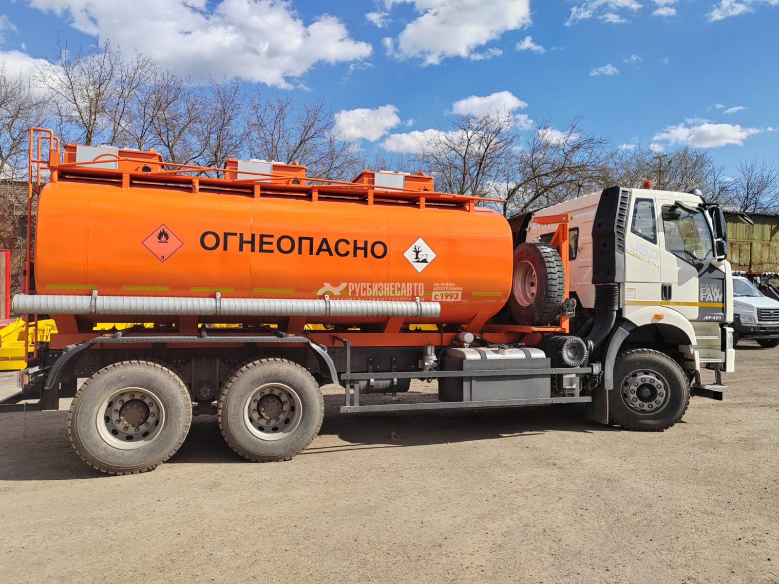 - Цвет: Оранжевый, надпись «ОГНЕОПАСНО». Наклейки «Знак опасности», «Знак вещества, опасного для окружающей среды». Контурная маркировка автоцистерны светоотражающим материалом. - Проблесковый маяк оранжевого цвета - 2шт.;