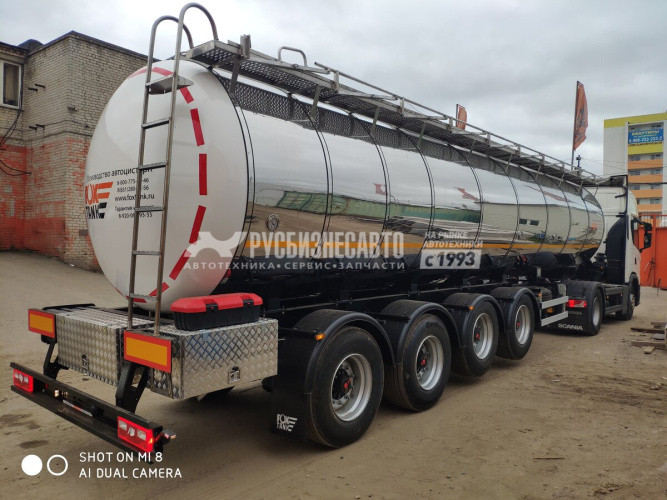 V цист. - 27; Кол.отсеков - 4 отсека; Сечение цист. - круг; Кол.осей - 4; Оси - SAF; Термоизол. - 150мм; Подогрев - без подогрева; Внутр.сосуд - нерж. сталь AISI 304; Внеш.сосуд - нерж. сталь AISI 304; Ошиновка - Односкатная; Подвеска - пневмо;