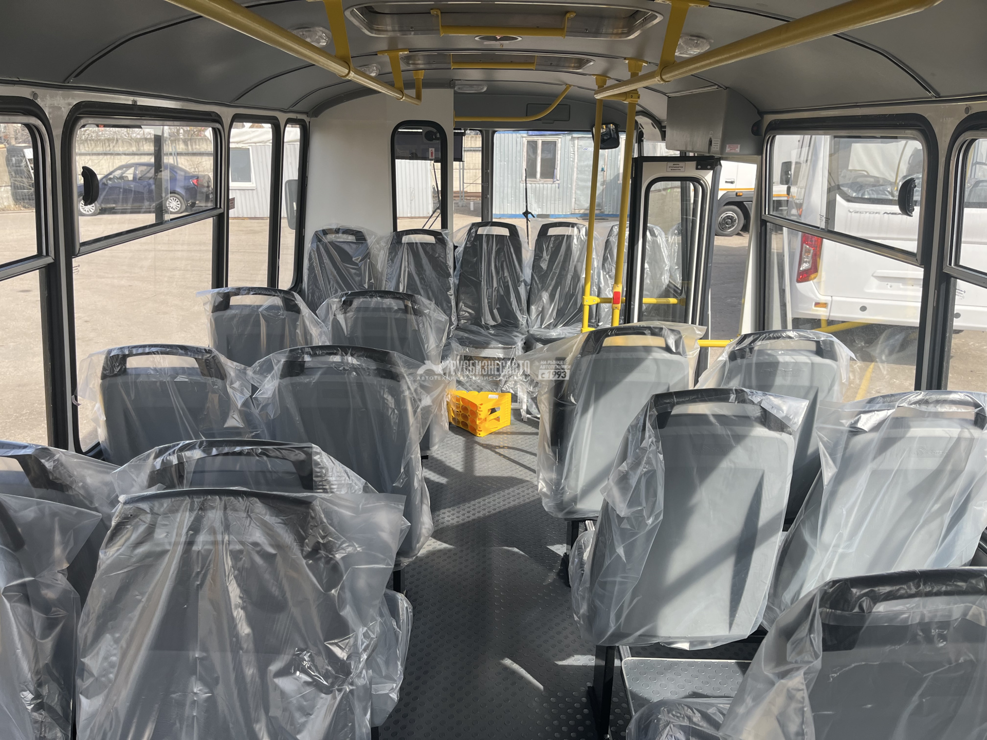 - Тип пассажирских сидений - жёсткие, сдвоенные, обивка "кожзам"