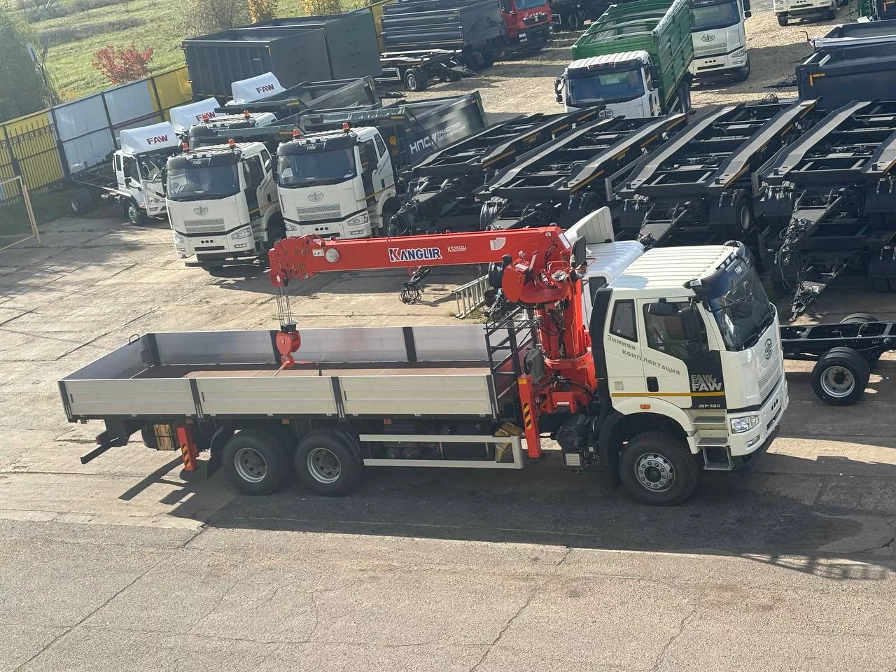 КМУ FAW 3250 (6*4, 390л.с., Евро-5) + KANGLIR KS2056H верх.упр. + борт алюминий 8,0м.