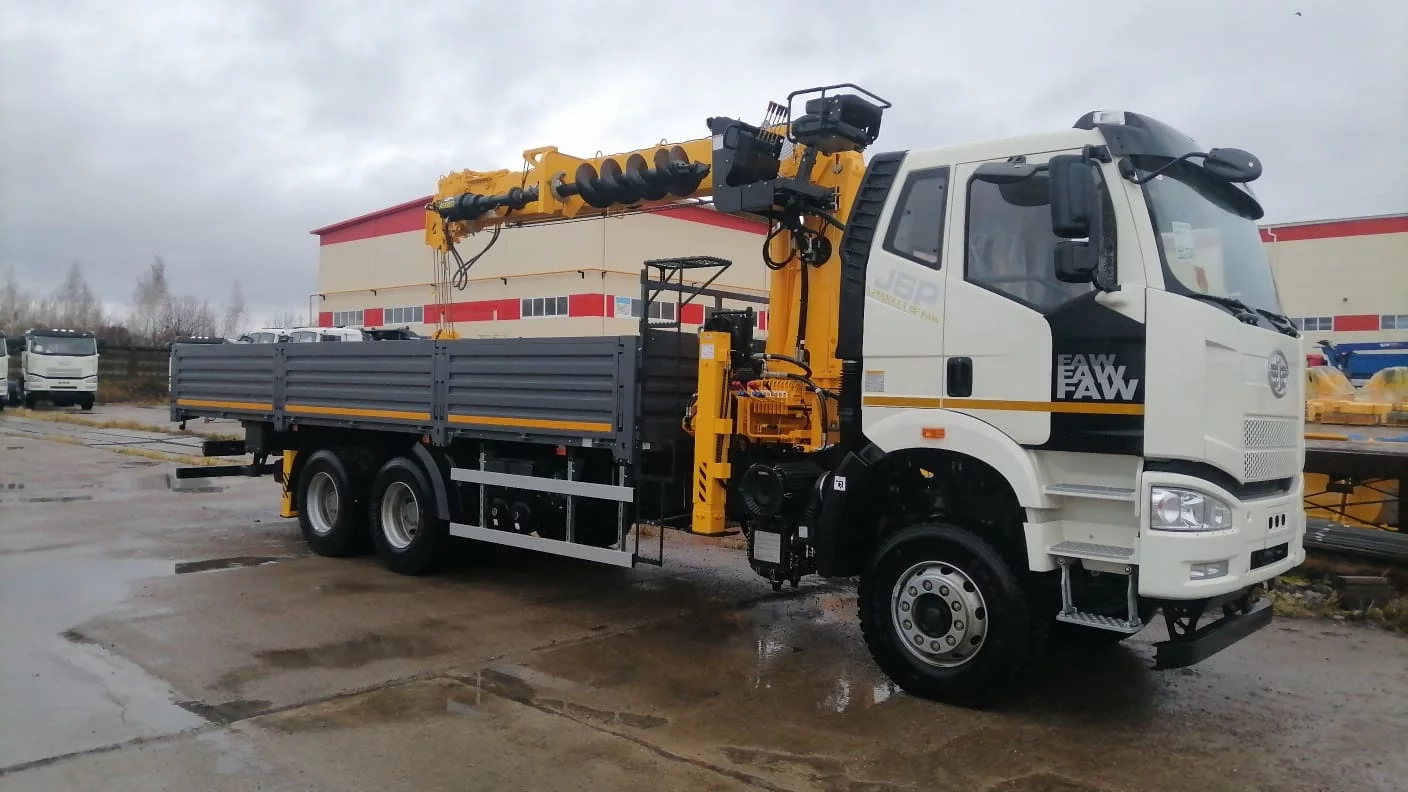 КМУ FAW 3252 (6*6, двускат, Евро-5)+SOOSAN SCS866LS верх.упр.+серт.корзина+бур 400мм.+борт ст.8,0м.