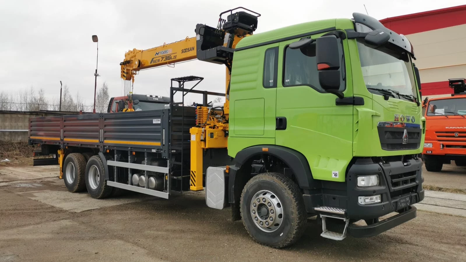 КМУ HOWO T5G (6*4, 400л.с., Евро-5) + SOOSAN SCS736LII верх.упр. + борт сталь 8,0м. СПМ