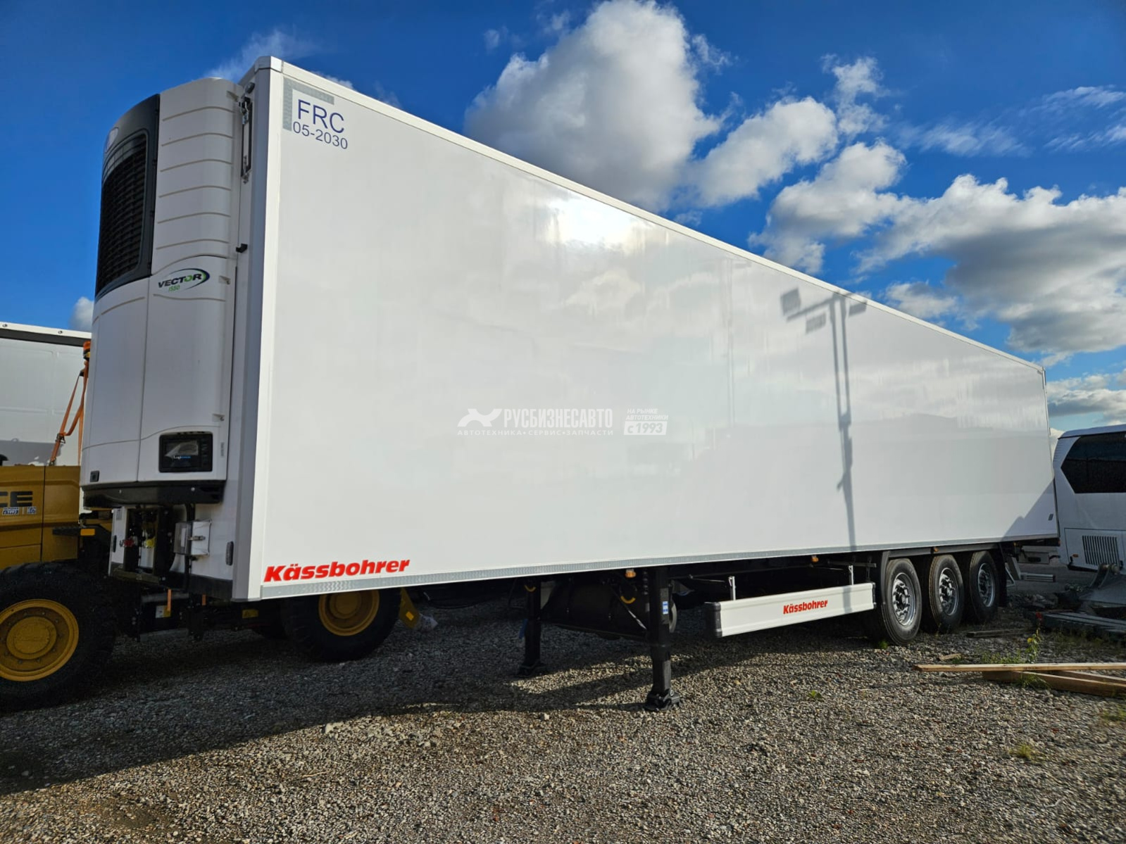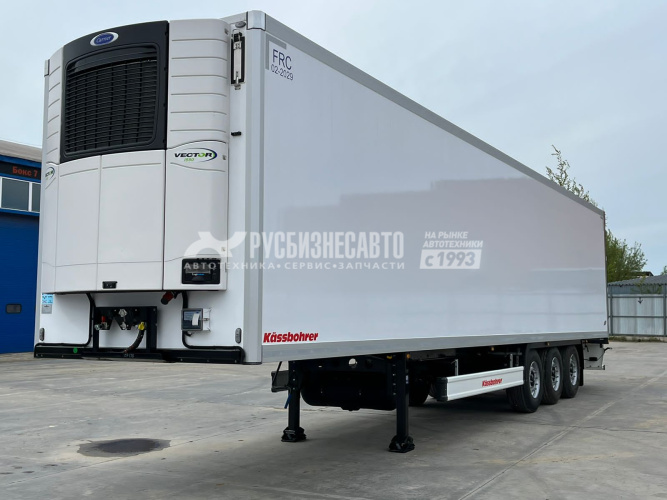 Kassbohrer Frigo полуприцеп Рефрижератор с установкой Carrier 1550 S c регистратором данных DataCold 300 T. с топливным баком 500 литров, оси BPW с дисковыми тормозами, пердняя подъемная ось, металлический рифленый пол, Задняя панель (Глянцевые GRP панели с внешней стороны, внутренние PU блоки, с внутренней стороны grp панели с глянцевым покрытием и армированием) толщиной 85 mm, GRP "сэндвич" панель со стальной рамой заднего прохода, двойные двери с двойными замками. По 4 петли у каждой двери и по 2 штанге из нержавеющей стали. Вентиляционный лючок на створке ворот.