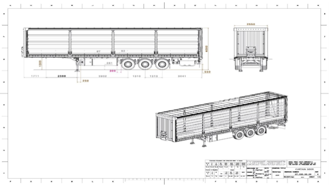 MARAL SANAT модели TKS3 шторно-бортовой L-13,6 м, платформа без стаканов и коников, V-92м3, 3 оси FOX, тормозные механизмы дискового типа, тормозная система включает систему стабилизации полуприцепа; система EBS 2S/2M, 2 датчика на одной оси с системой RSP. Предназначен для транспортировки грузов различного