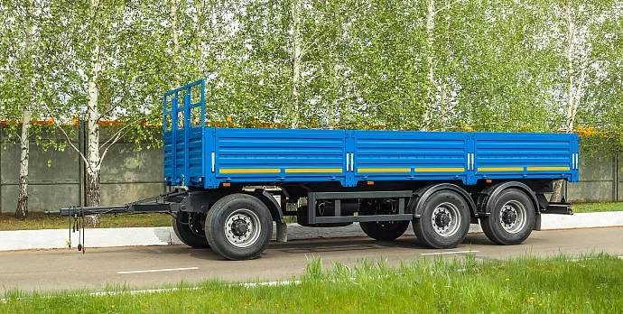 Кол.осей - 3; Двускатная ошиновка; V- 14.5м3;Груз-ть - 16 т; Тент - нет; Внутр.разм.платф. - 8068х2476х730; Тип букс.устр-ва - EVRO (беззазорная сцепка); Шины - 9.0R20; Подвеска - рессорная; ССУ - 870/970; Оси - Плант/FUWA