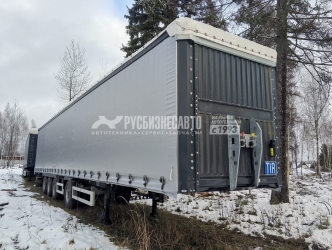 Шторный полуприцеп без борта, длина 16,5 метров, техническая г/п - 51254, оси 4 x 9.000 кг SAF дисковые тормоза, тормозная система Wabco с системой EBS 4S/2M и электронной системой устойчивости (Roll Stability System), первая и вторая подъемная ось, под ССУ 1150 мм, Боковой тент класса 9х9, массой 850 г/м2, прочностью на разрыв 3500 Н/с и сопротивлением на разрыв 350 Н. Тент крыши 680 г/м2., без запасного колеса, две корзины под запаску, стаканы под коники, без коников