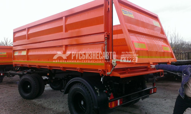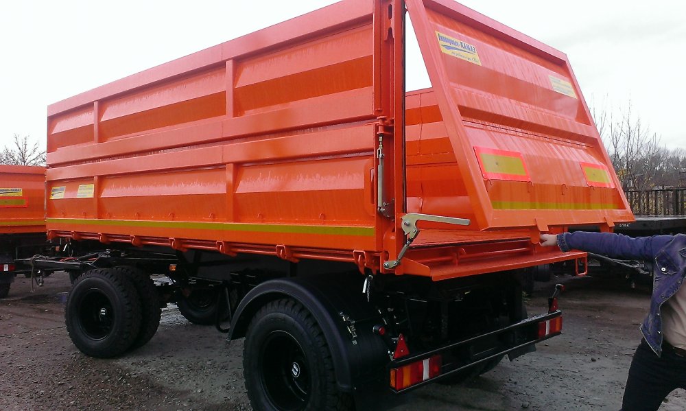 Кол.осей - 2; Груз-ть - 10,7 т; Тип разгруз. - З-х стор. разгрузка; V платф. - 20 м3; Шины - 9.0R20; Подвеска - рессорная; Оси- Плант, Дышло треугольное, два положения - ССУ 670-970, ТСУ-50ММ ГОСТ, задний откидной борт