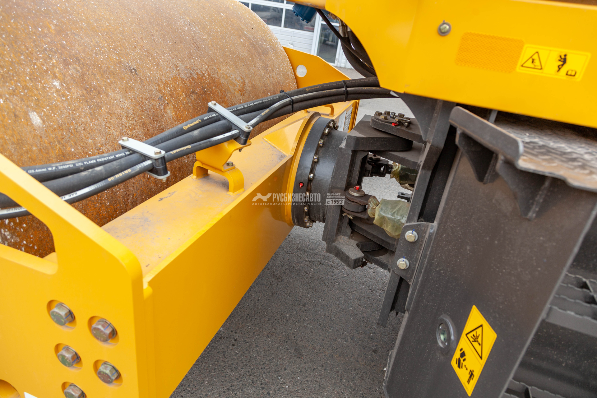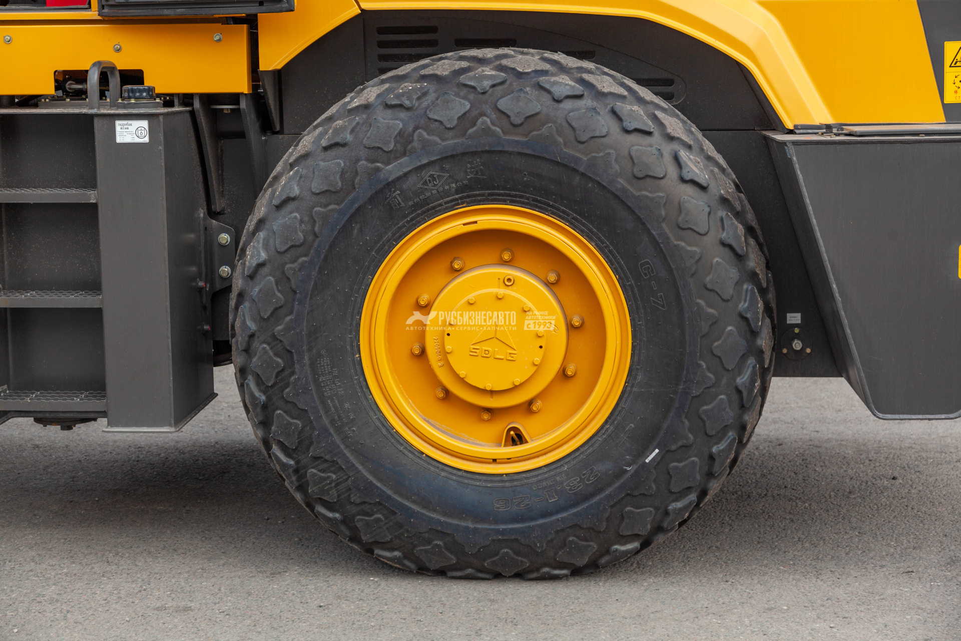 На каток установлены шины с высокими протекторами 23.1-26, 8PR, что способствует лучшему сцеплению и надёжности на различных типах грунта.