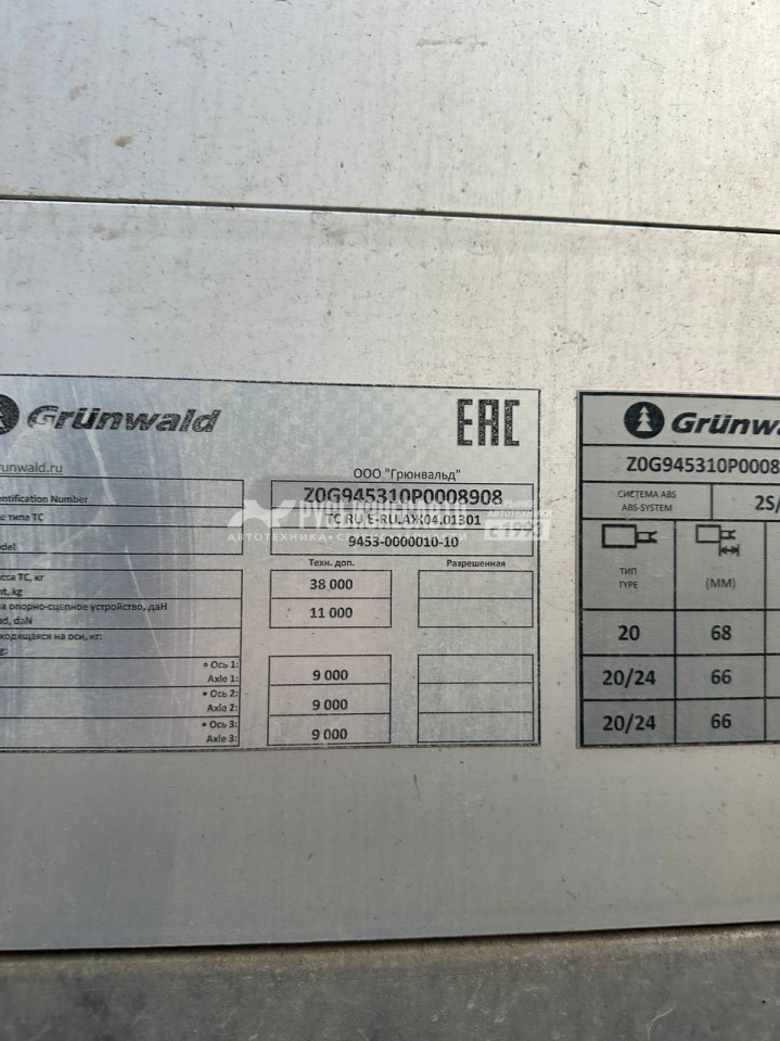 GRUNWALD, 9453-0000010-10, ПОЛУПРИЦЕП б/у (штора 13,6м)(2023 г.)(8908)-Сбер комиссия - p3 СЕРВИС И ЗАПЧАСТИ