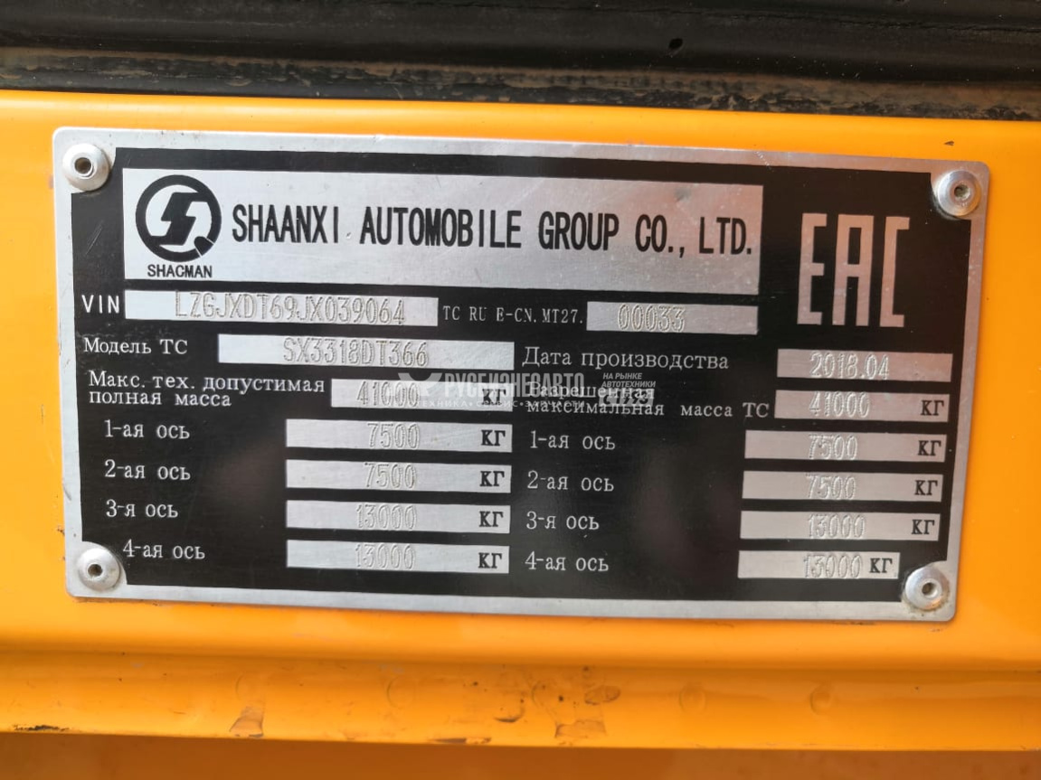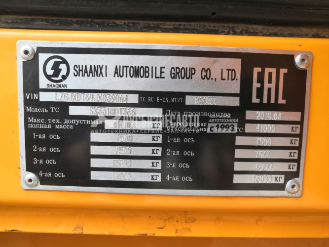 Технические характеристики Самосвал SHACMAN SX3318DT366 8x4 б/у (2018 г, 163 863 км)