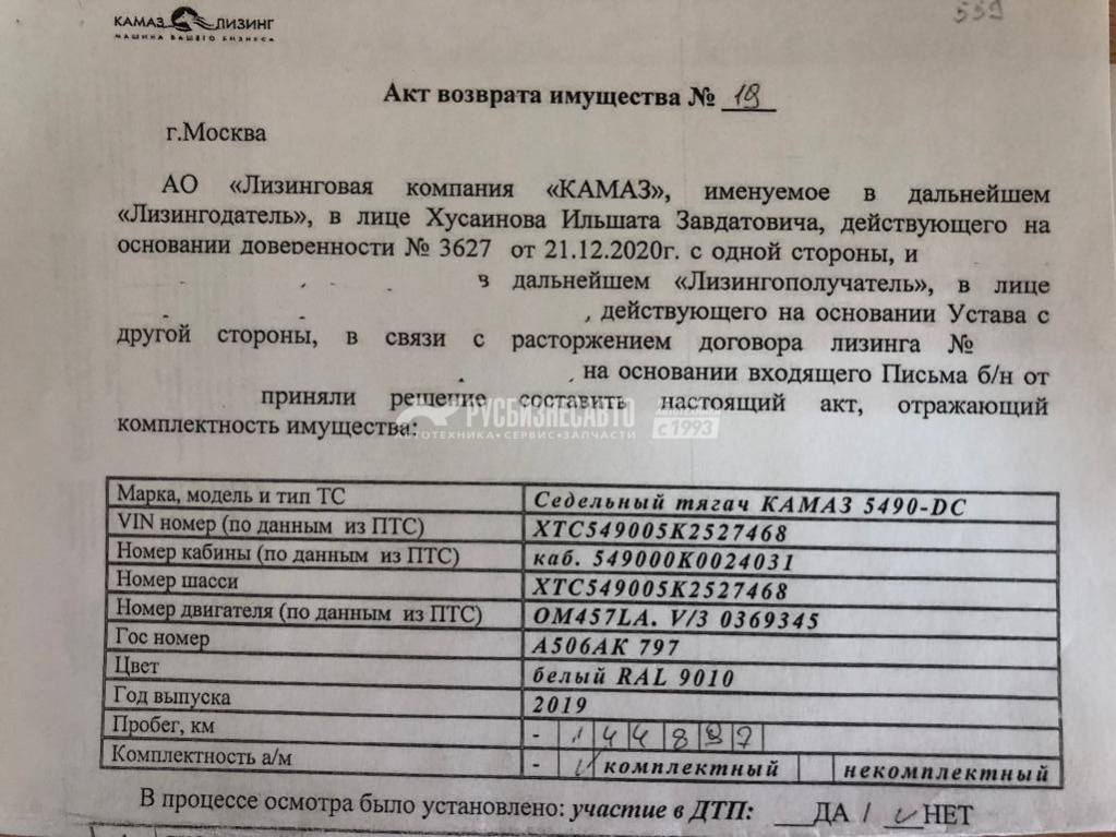 КАМАЗ 5490-DC седельный тягач б/у (2019 г., 145 097 км.)  - p1 ЛИЗИНГ И КРЕДИТ