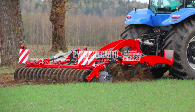 Установлено 8 надёжных и долговечных дисков, устойчивых к износу. Рассчитаны на продолжительную эксплуатацию. Применение стерневого тракторного культиватора позволяет выполнять обработку почвы на глубину до 30 сантиметров. Применяется навесная жёсткая рама. Ширина обработки почвы составляет 3,5 метра.