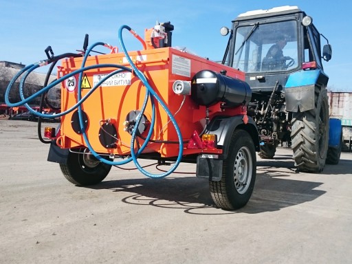 Битумозаливщик БЗ - высокопроизводительное оборудование для санации швов, трещин, а также производства мелкого ремонта асфальтобетонных покрытий, с возможностью подключения пневматического инструмента. Представляет собой тракторный одноосный прицеп с установленной на нем термоизолированной ёмкостью, которая заполняется расплавленным битумом.