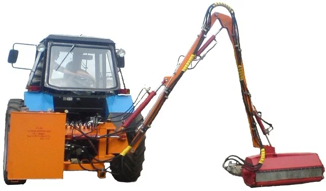 Благодаря наличию в конструкции манипуляторной стрелы роторная косилка на трактор МТЗ может использоваться на участках небольшой площади со сложным рельефом. Единственное ограничение – не допускается наличие крупных посторонних предметов: камней, металлолома и прочего. Скорость движения режущей насадки такова, что скошенный материал перерабатывается в мелкие фракции, которые несложно удалить по окончании работ по благоустройству участка.