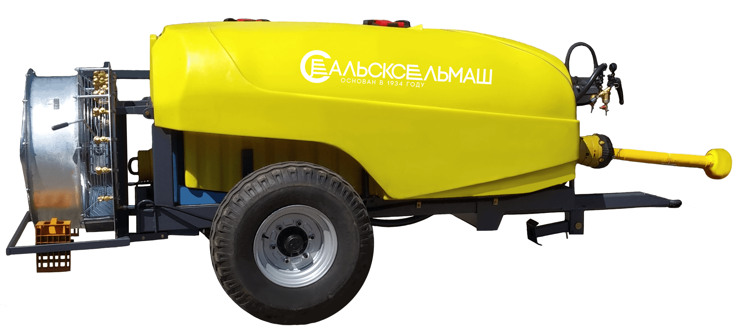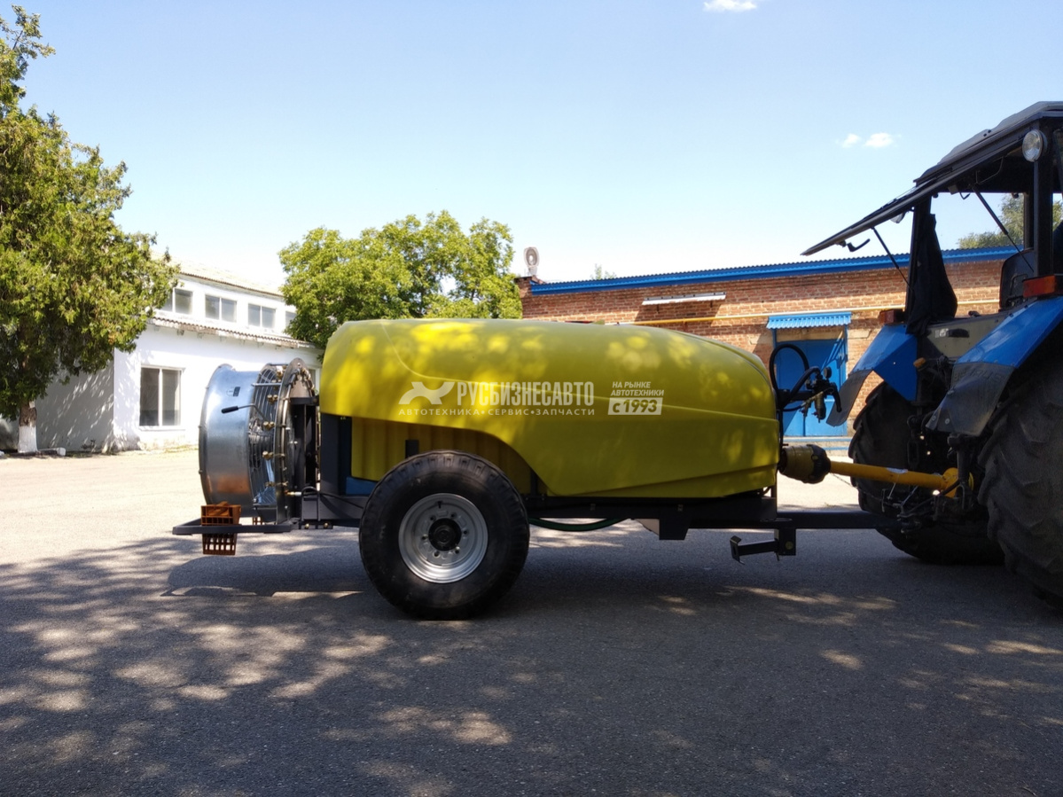 Опрыскиватель садовый полуприцепной. Емкость 2000 л. - пластик. Радиальная вентиляторная группа. Двухпозиционные отсекатели. Вентилятор 815 мм, трехступенчатая регулировка угла атаки лопастей, двухступенчатый редуктор.
