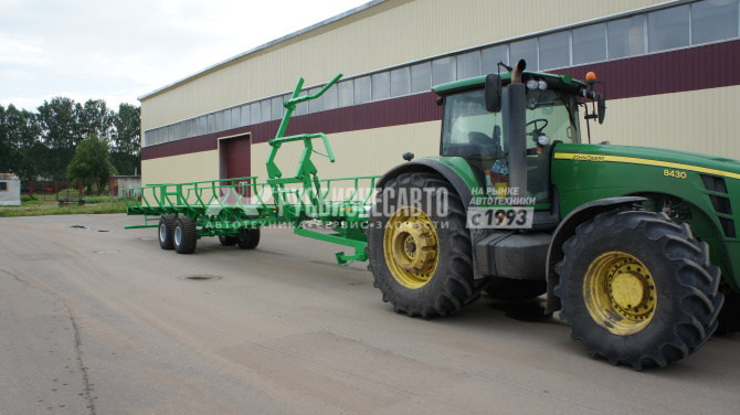 Полуприцеп-рулоновоз тракторный ПРТ-12 предназначен для перевозки рулонных тюков сенажа, соломы и т.п. по всем видам дорог и в полевых условиях, для эксплуатации с колесными тракторами классов 2,0 — 3,0, имеющими раздельно-агрегатную гидросистему, тягово-сцепное устройство по ГОСТ 3481, а также выводы для подключения пневматической тормозной системы по ГОСТ 4364, электрооборудования по ГОСТ 9200. Оборудован погрузочным механизмом, приводимым в действие от гидросистемы трактора.
