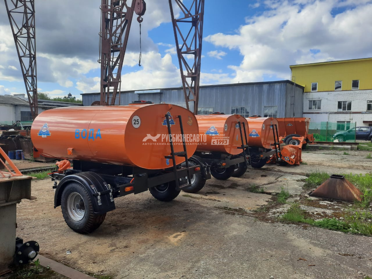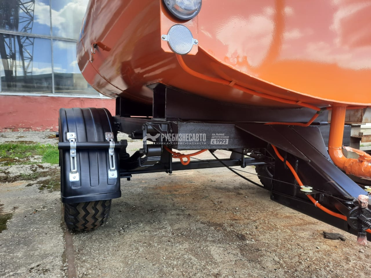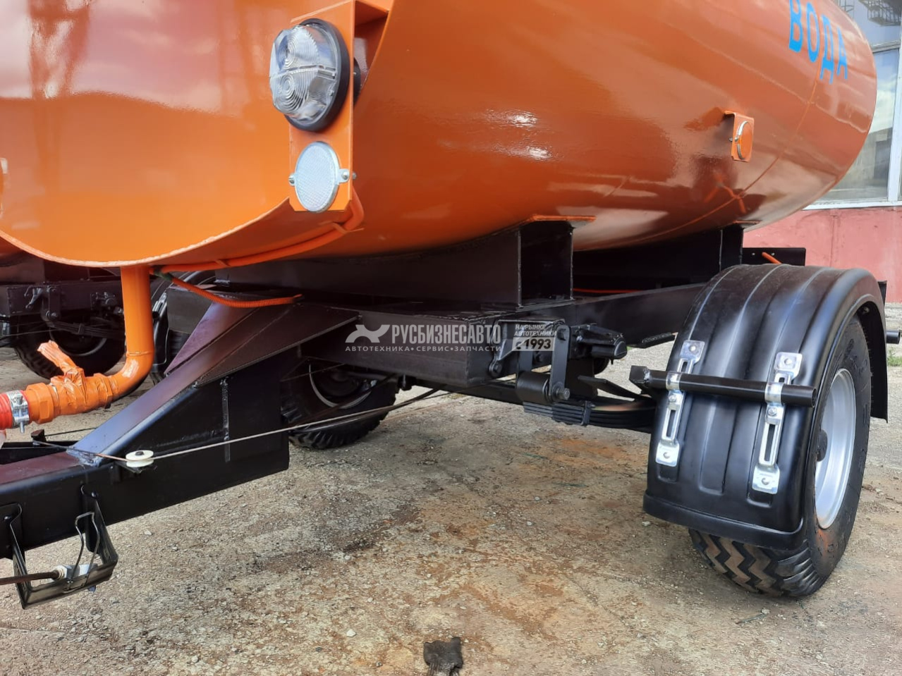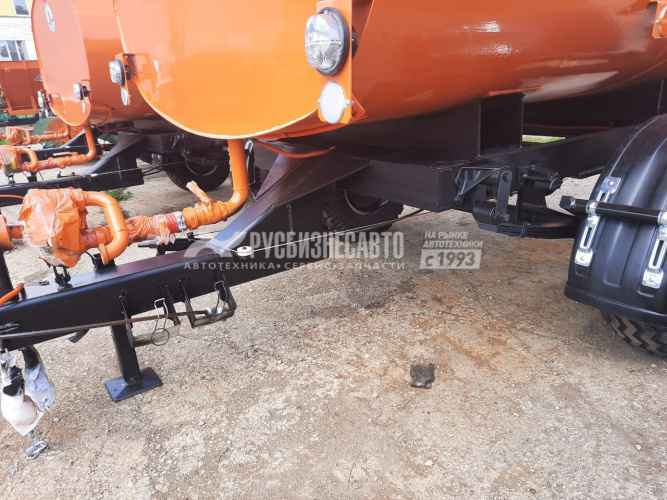 В комплект входит: Емкость 3,5м3( форма емкости: эллипс) на тракторном шасси, насосное оборудование( пр-ль 450л/мин, давление до 6 атм), полипропеленовая разводка с распылителями, лестница с 3-мя ступеньками расположенная сзади, крышка поворотно-откидная( пластиковая) при изготовления шасси применяется труба профильная 150х150хх8, краска: грунт-эмаль полиуретановая, глянцевая, срок службы -8лет