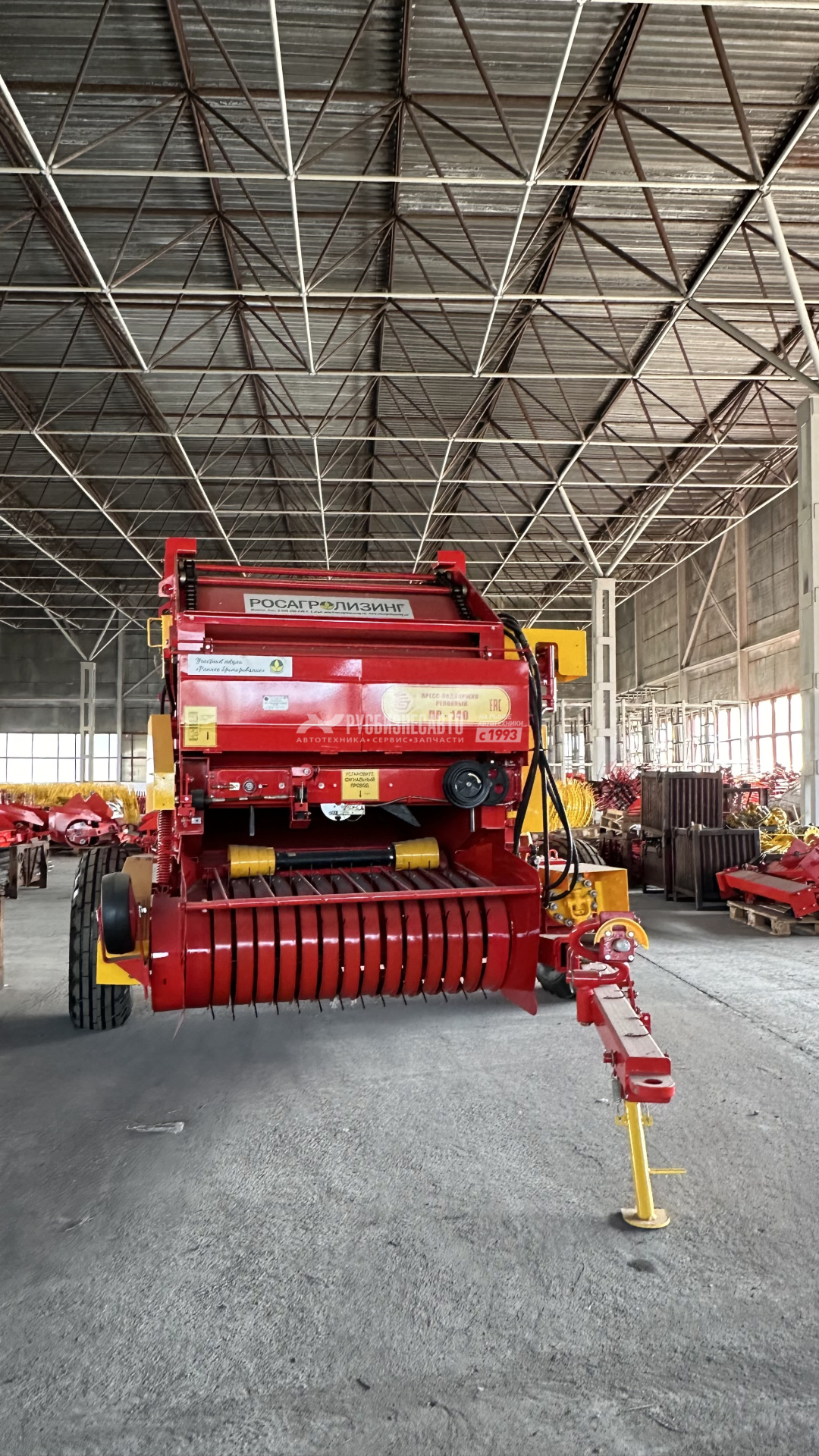 Пресс-подборщик имеет цепочно-планчатую камеру прессования ипредназначен для подбора валков сена естественных и сеяных трав, соломы ипрессования их в рулоны с одновременной автоматической обмоткой шпагата.Пресс устойчиво выполняет технологический процесс при ширине валков0,8 - 1,4 м и длиной срезанного стебля не менее 40 см.
