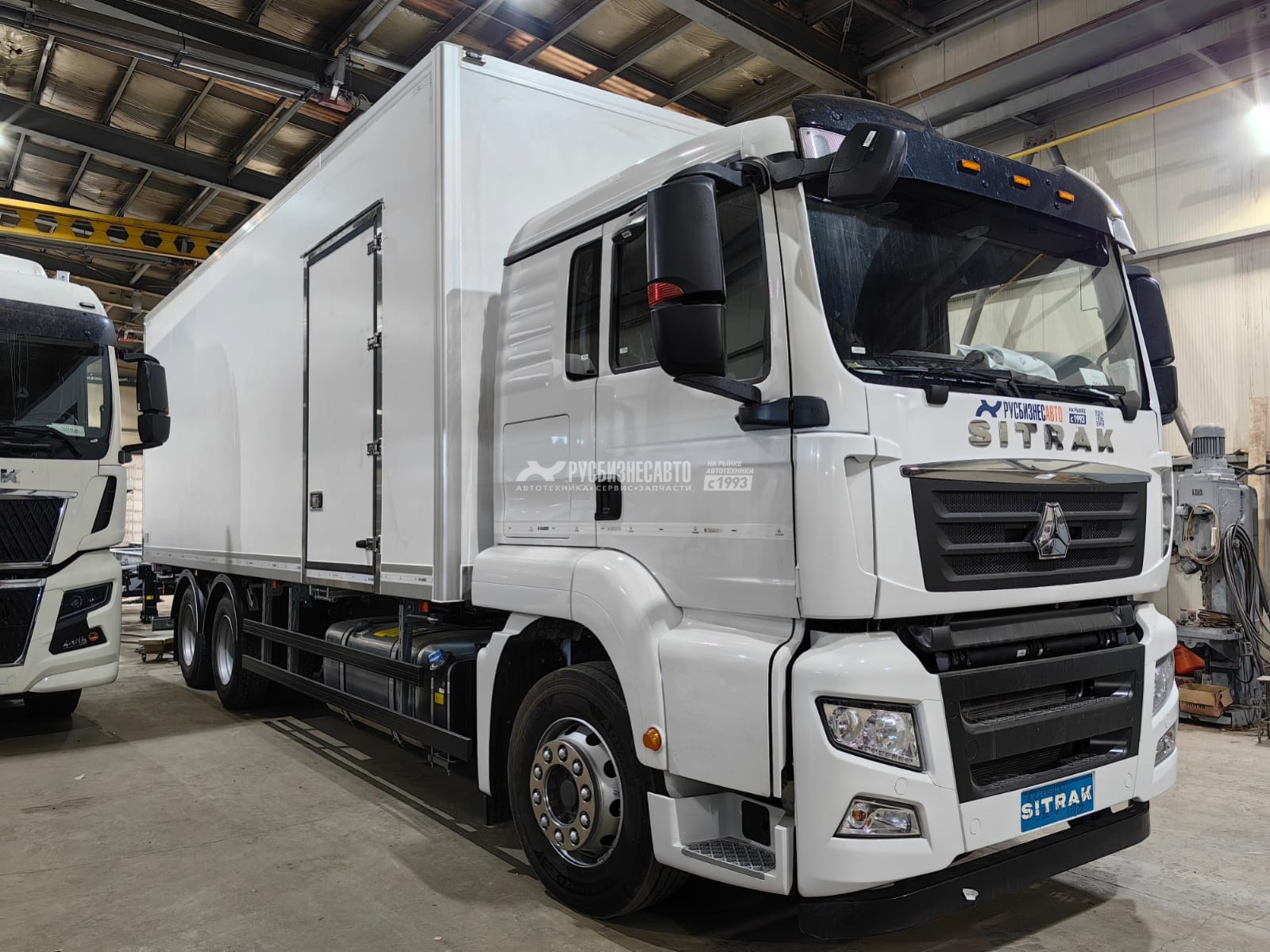 Две боковые двери, проем 1200х2000 мм / 800 мм на правом борту, 4800 на левом борту от передней стенки / утепл. 60 мм.